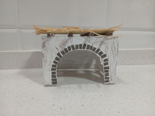 Casitas de cartón para el Belén, hechas a mano. - Diseño rústico con acabado de piedra y paja. - Ideal para crear tu propio pesebre.