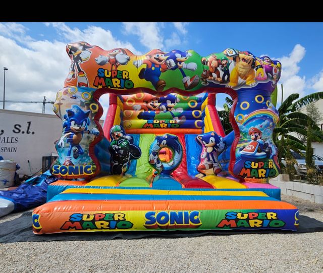 Detalles del productoCastillo hinchable infantil con tobogán, ideal para eventos. Está en muy buen estado y es muy colorido.