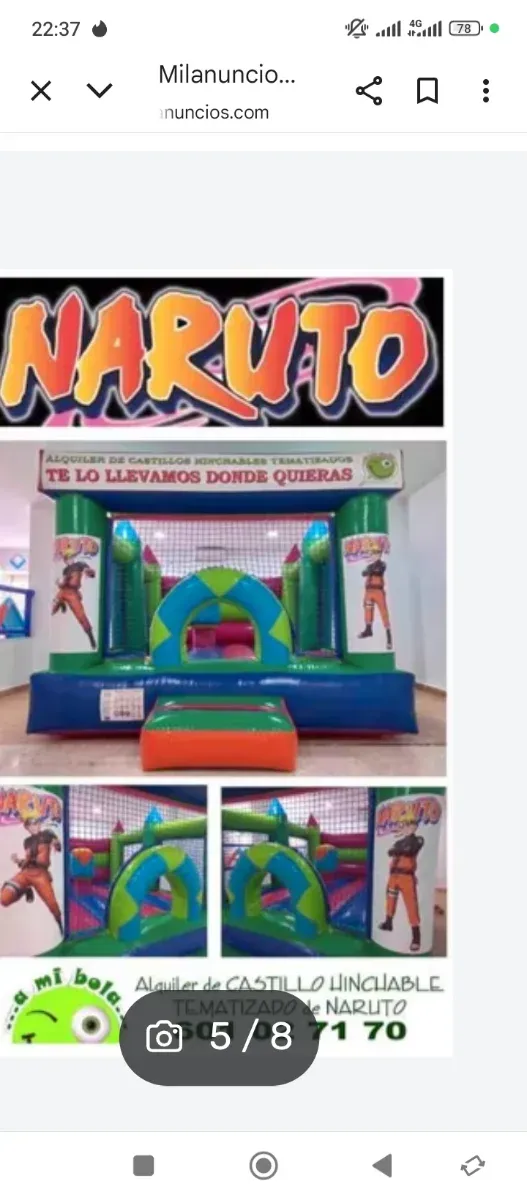Detalles del productoCastillo hinchable temático de Naruto, perfecto para fiestas y eventos. Se lleva a donde quieras.