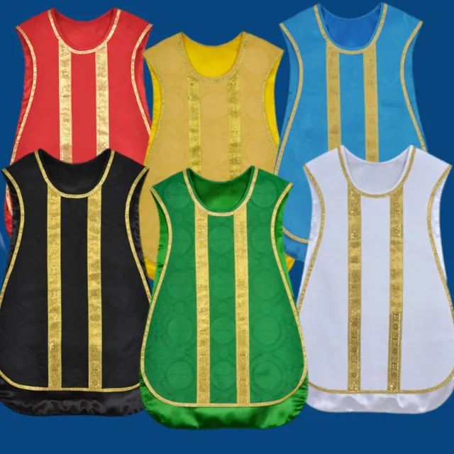 Detalles del productoCasullas tradicionales de guitarra con todos sus complementos , estola , manipulo , velo de cáliz y Carpetilla.