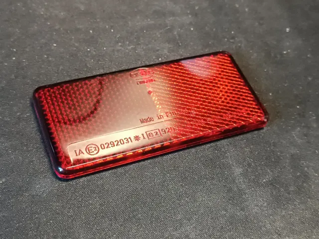 Detalles del productoCatadióptrico reflectante de color rojo, ideal para vehículos.