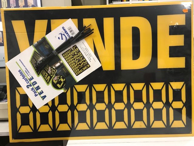 Detalles del producto2 paquetes con dos carteles cada uno con la palabra “VENDE” y zona para el telefono