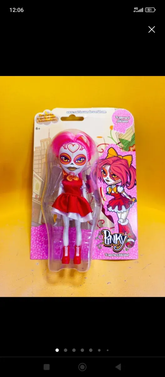 Preciosa muñeca Catrina Pinky sin abrir. Es una muñeca encantadora y está nueva. - Muñeca articulada. - Vestido rojo. - Pelo rosa. - Diseño de Catrina.