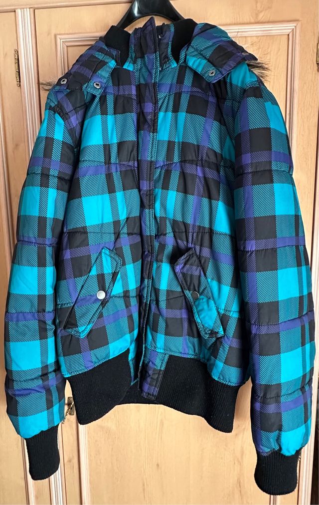 Cazadora con borreguillo en el interior. Se puede quitar el gorro ya que se engancha con botones. Presenta un bolsillo interno. Talla 170cm (14años +) Talla M para adultos.