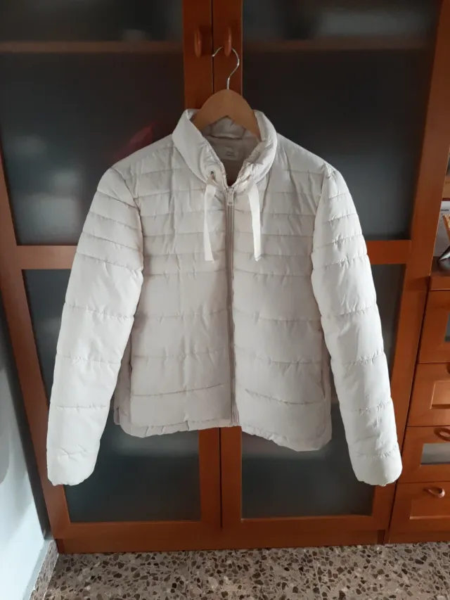 Cazadora acolchada beige y blanca
