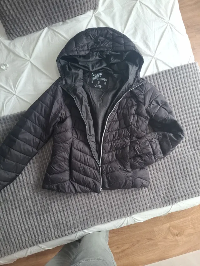 Cazadora acolchada negra con capucha