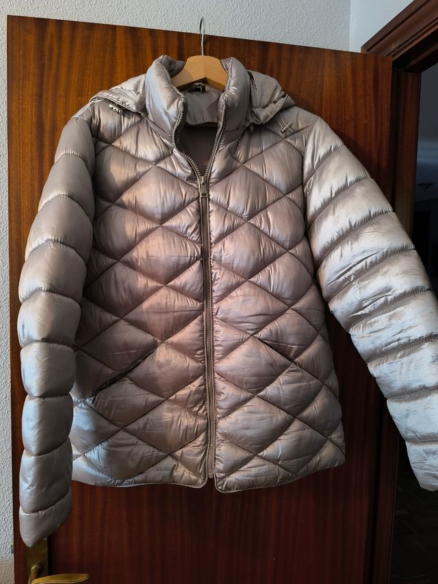 Cazadora acolchada plateada mujer