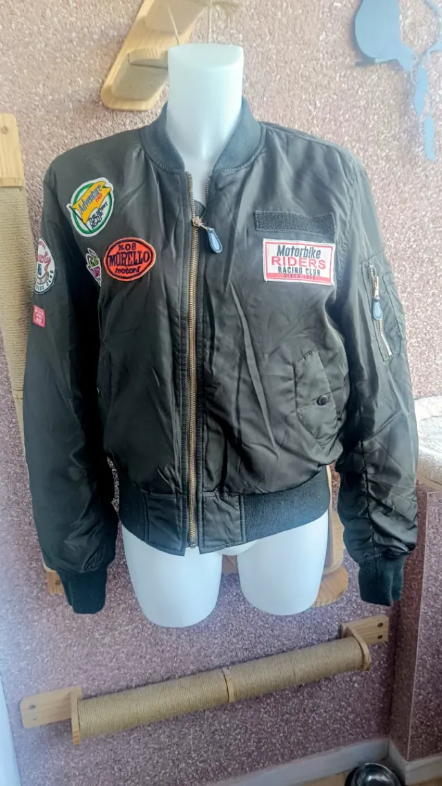 Cazadora aviador mujer verde parches