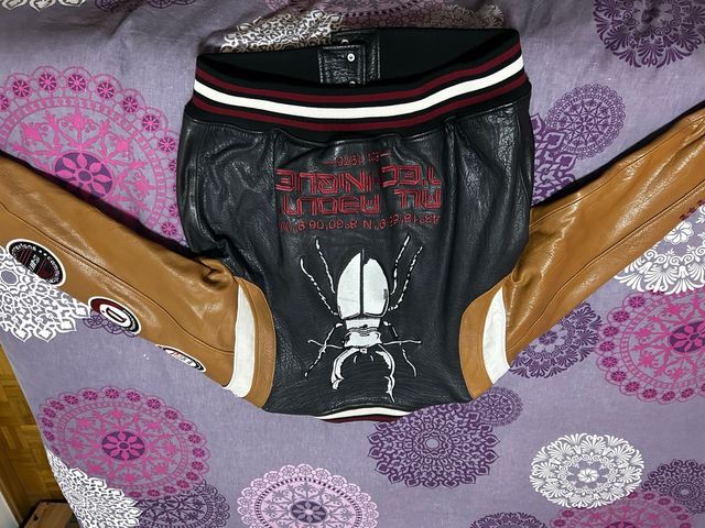Cazadora Beisbolera Piel Negra y Marrón