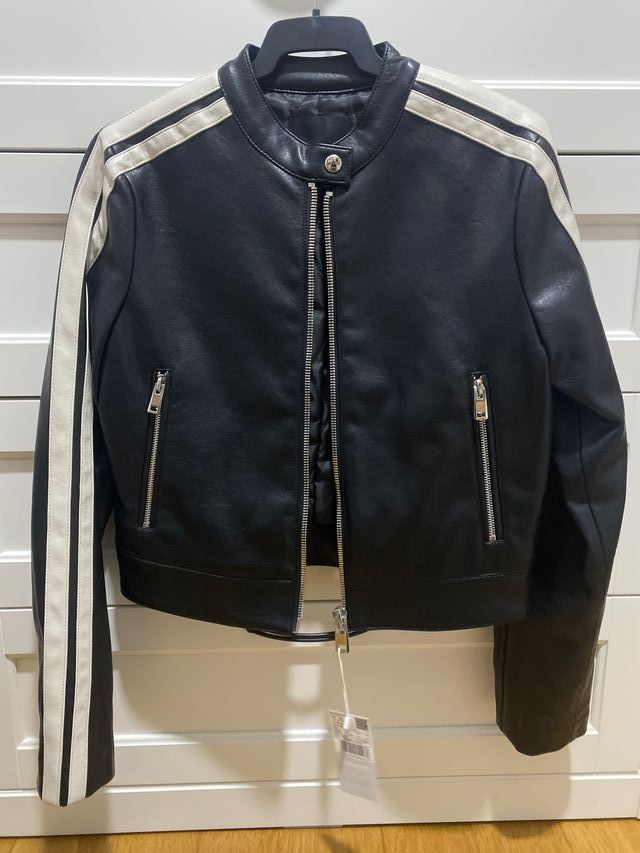 Cazadora Biker Negra con Rayas Blancas piel XS