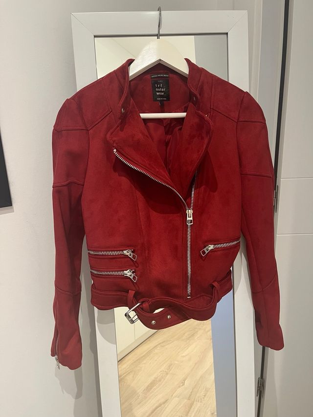 Cazadora Biker Zara Roja Talla XS