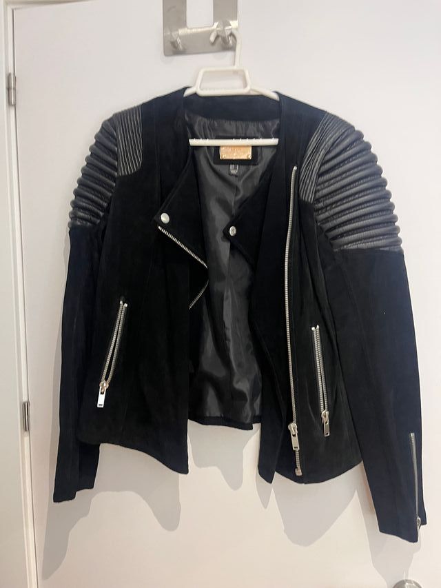 Cazadora Bomber en piel negra talla 40 de Mango,
