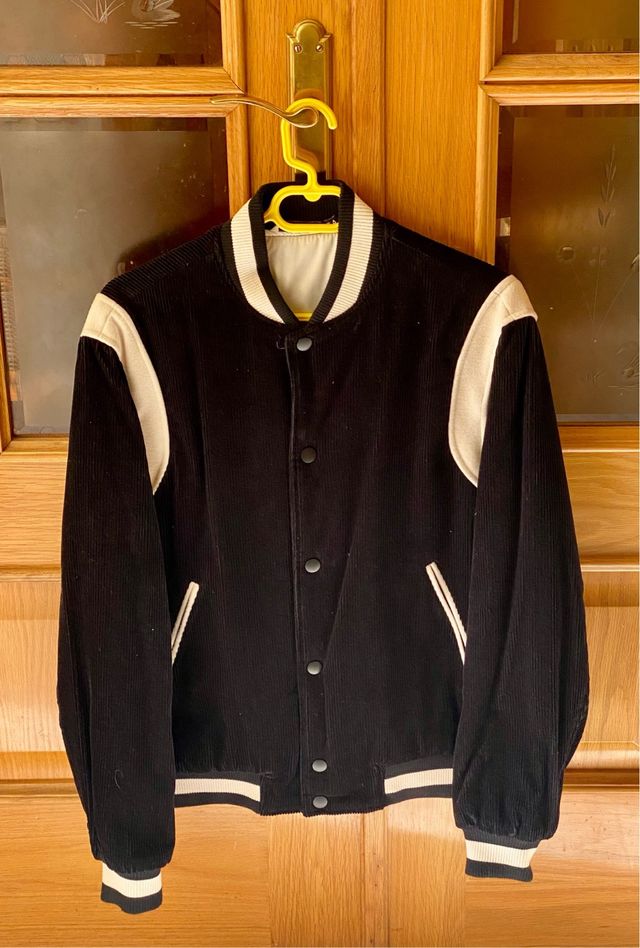 Cazadora bomber negra y blanca de Pana.
