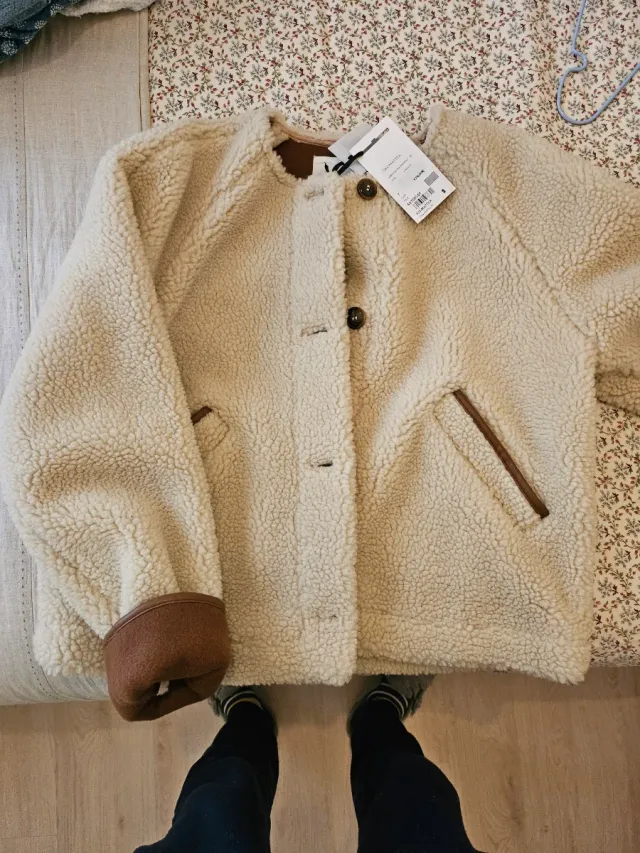Cazadora borreguito bomber beige y marrón