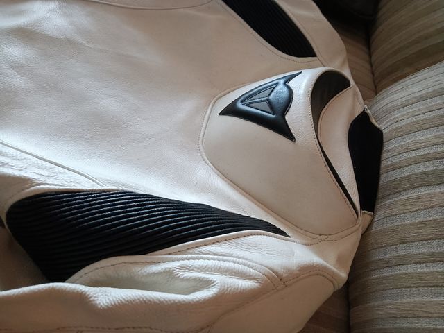 Detalles del productoChaqueta - pantalón - mono Dainese talla S y pantalón XS con cremallera para unirlos. Mido 1'76. Está en muy buenas condiciones. Protecciones en brazos, hombros, nuevas, muslos... El pantalón de cuero negro es nuevo con cremalleras para la unir con la Caqueta, 250€. Con deslizaderas Dainese rojas nuevas 300€