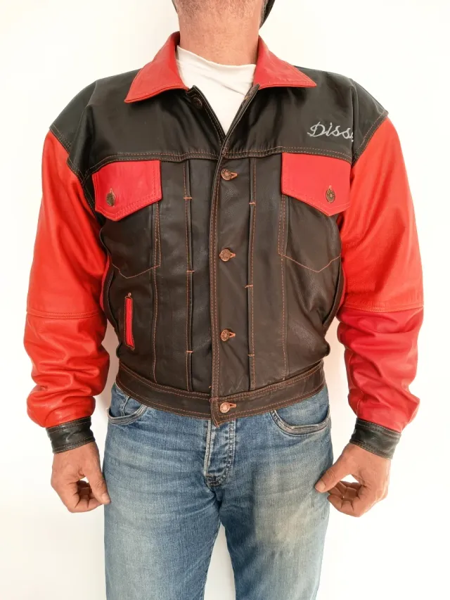 Cazadora Cuero Vintage Negra y Roja