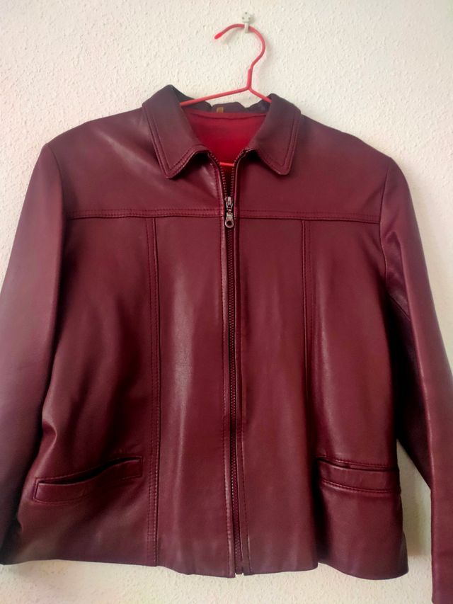 Cazadora de piel granate