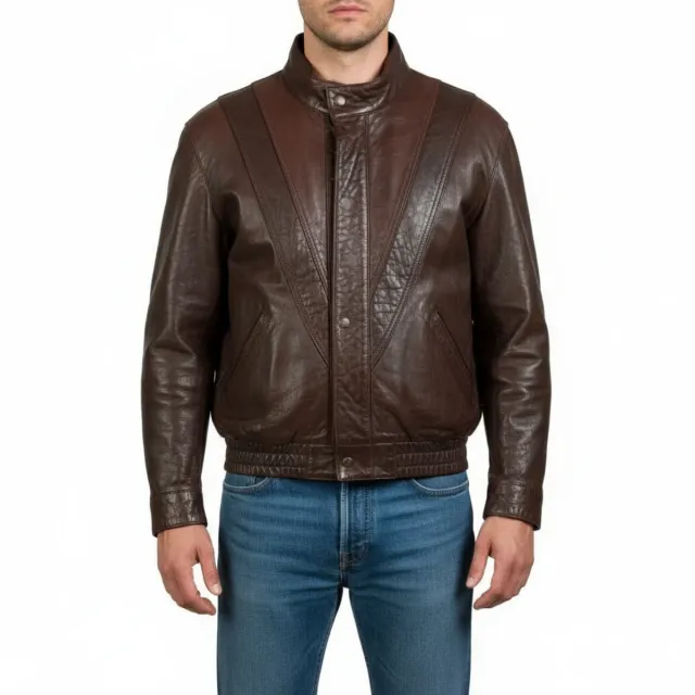 Cazadora de piel marrón hombre L 52