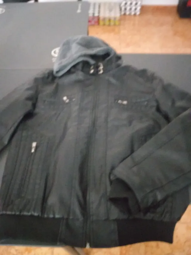 Cazadora de piel negra con capucha hombre