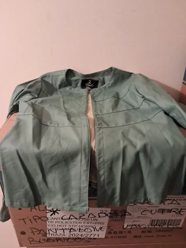Cazadora de polipiel de color verde agua