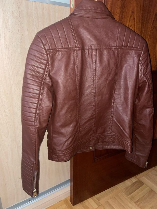 Cazadora efecto piel marrón