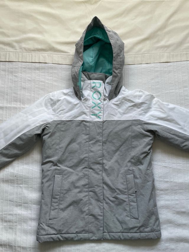 Detalles del productoCazadora de esquí color blanco, gris y turquesa. Poco uso. Tiene un par de manchas en una de las mangas por detrás (2 últimas fotos), por lo demás está en perfecto estado. Tengo pantalón a juego talla 10 en mi perfil.
