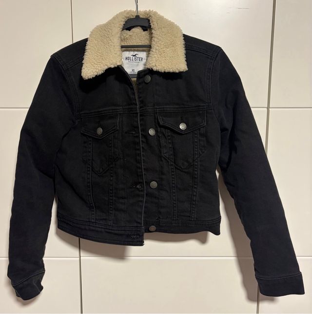 Cazadora Hollister negra con borreguillo T.XS
