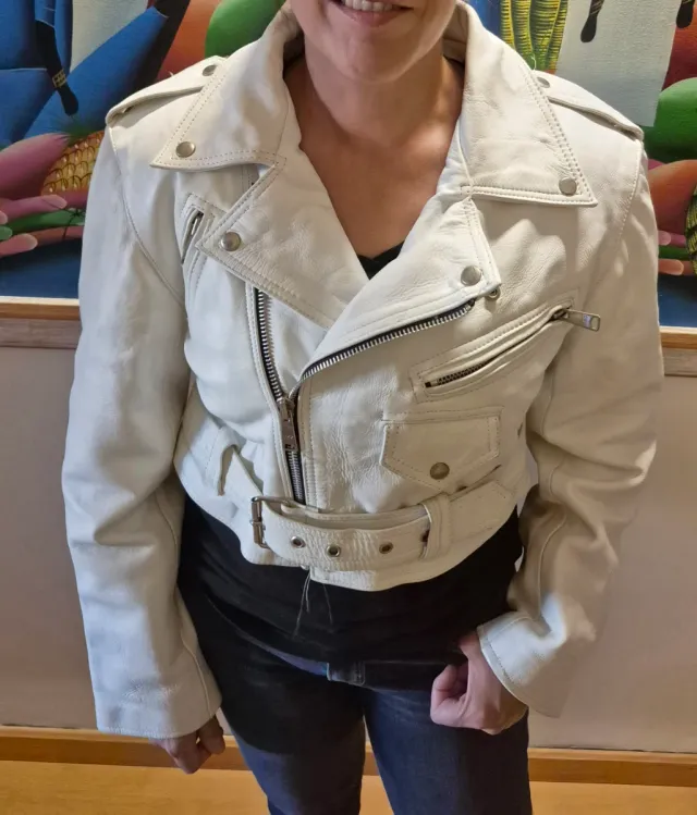 Cazadora de piel blanca