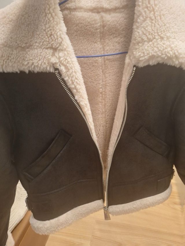 Cazadora de estilo aviador con forro interior de borreguito.
