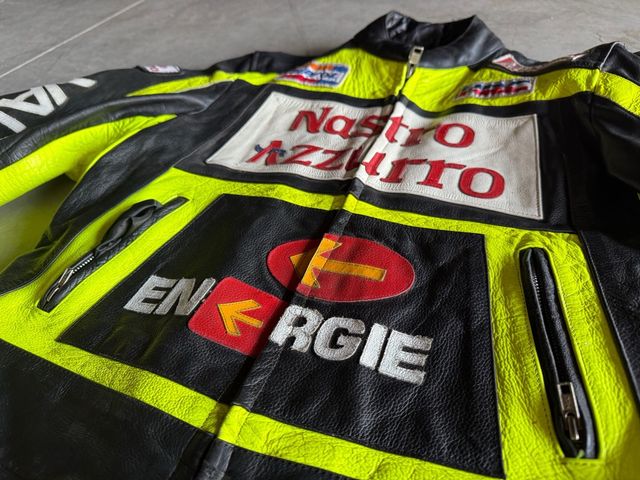 Detalles del productoCazadora de cuero para moto con diseño inspirado en Valentino Rossi.