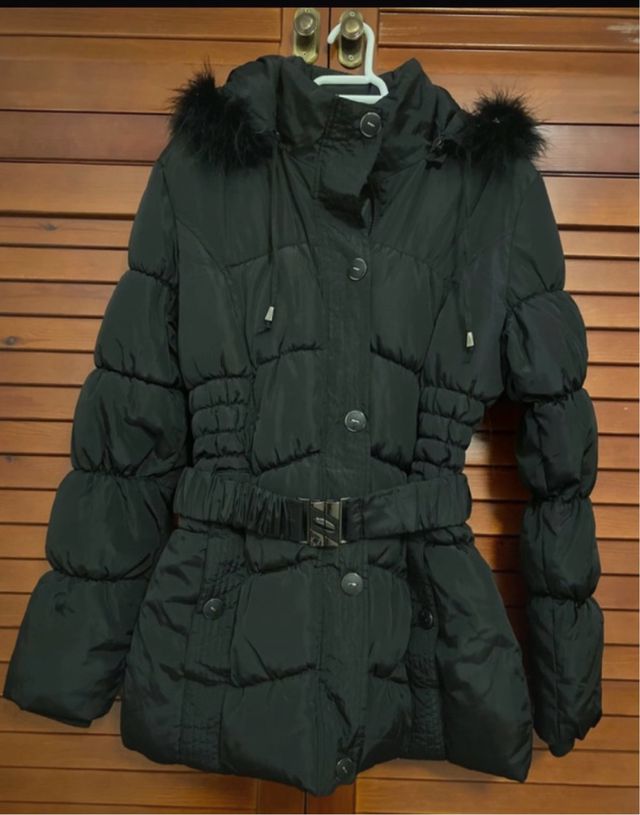 Cazadora negra acolchada con cinturón