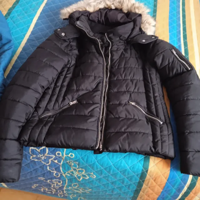 Cazadora negra con capucha y pelo