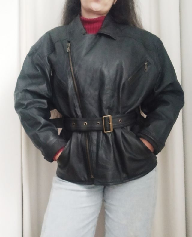 Cazadora negra de cuero con cinturón