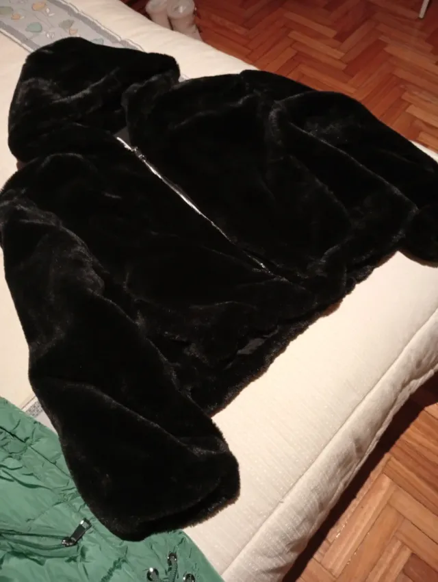 Cazadora negra de pelo sintético con capucha