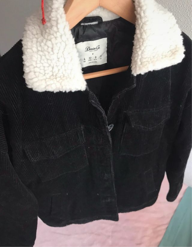 Cazadora Negra Pana con Borrego Bomber Talla S