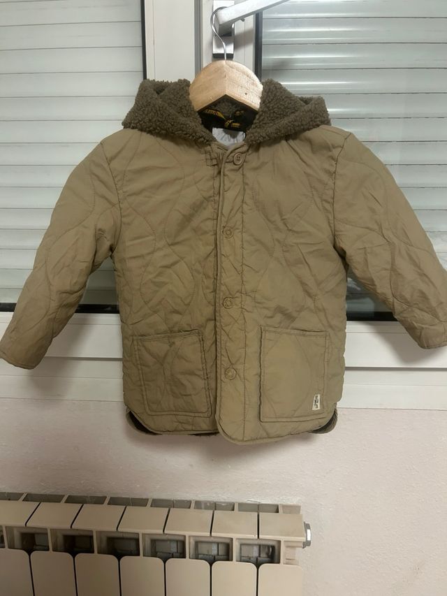 Cazadora niño beige con capucha marrón talla 3/4