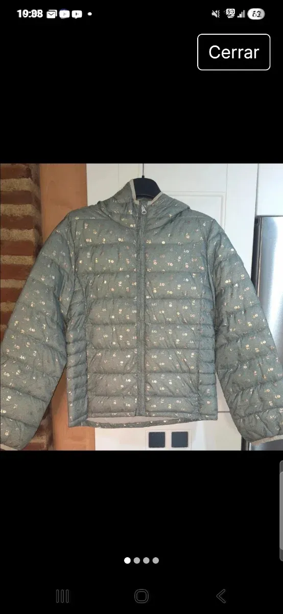 Cazadora tipo plumón de GAP para niña. - Diseño acolchado. - Estampado floral. - Con capucha. Muy ligero y calentito