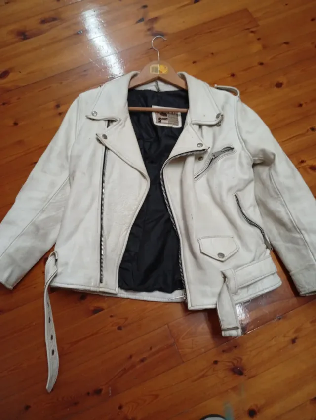 Cazadora Punk Cuero Blanca Talla 42 Londres