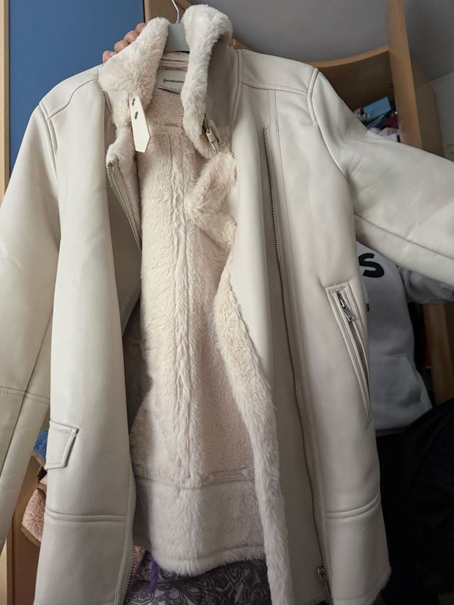 Cazadora Stradivarius borreguillo pelo beige
