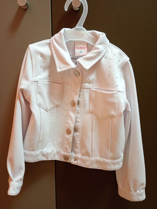 Detalles del productoCazadora vaquera blanca para niña de la marca Boboli. Un básico para cualquier armario. Talla 3 años pero es amplia