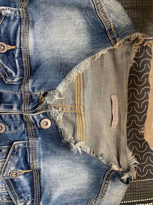 cazadora vaquera Vintage muy estilosa con escote deshilachado S/M
