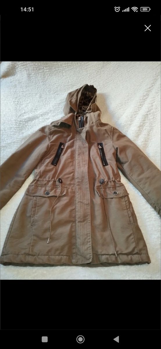 Cazadora verde militar oliva con capucha pelo