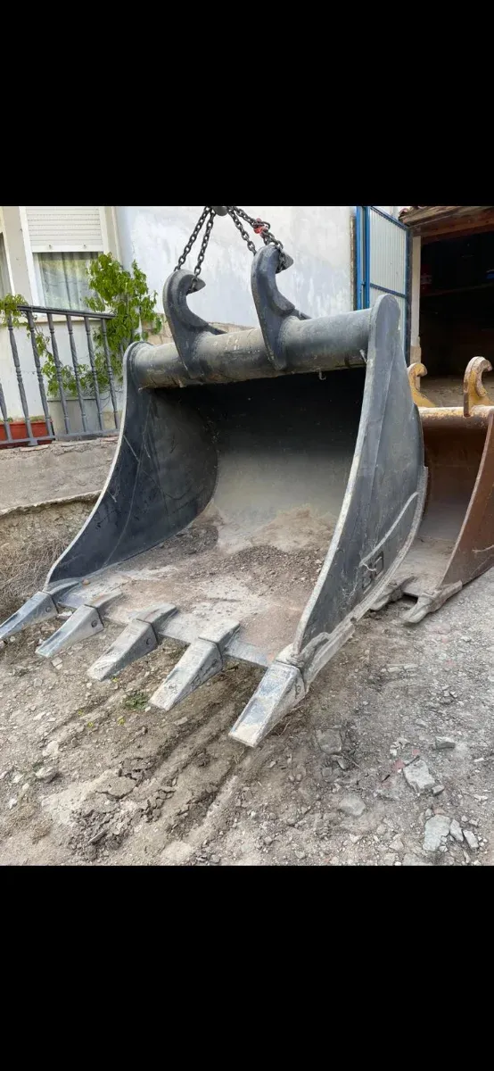 Cazo de retroexcavadora con dientes. - Cazo de gran tamaño. - Dientes metálicos. - Ideal para trabajos de excavación.