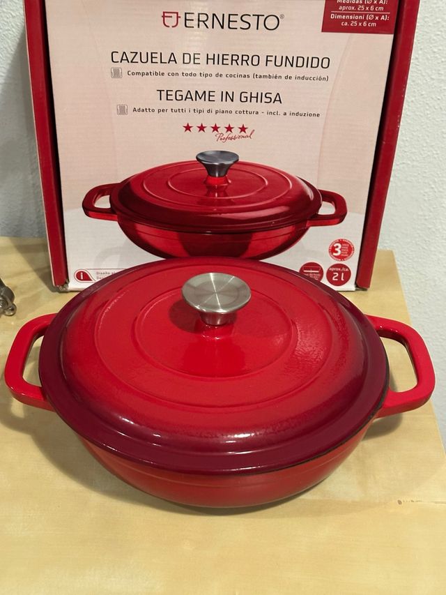 Cazuela Hierro Fundido Ernesto Roja 25cm 2L