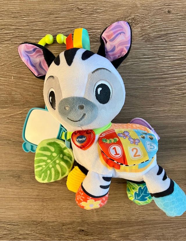 Detalles del productoPeluche de cebra musical de la marca VTech, ideal para bebés y niños pequeños.