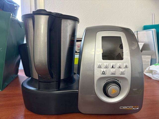 Detalles del productoRobot de cocina de la marca española Cecotec similar a Thermomix en cuanto a prestaciones (1500W, 3,3 L de capacidad en la jarra de acero inoxidable...). Incluye 23 funciones (TROCEA, PICA, TRITURA, MUELE, PULVERIZA, RALLA, BATE, MONTA, EMULSIONA, MEZCLA, COCINA, REMUEVE, COCINA AL VAPOR, ESCALFAR, CONFITAR, AMASA, HIERVE, MANTIENE CALIENTE, FERMENTA, COCINA DE PRECISIÓN GRADO A GRADO, BAÑO MARÍA, RECALIENTA Y TURBO. Incluye todos los accesorios: aspas normales (cuchillas), mariposa, pala de amasado, utensilios de coccion al vapor que nunca han sido utilizados... y la caja original, instrucciones y recetario Medidas del producto