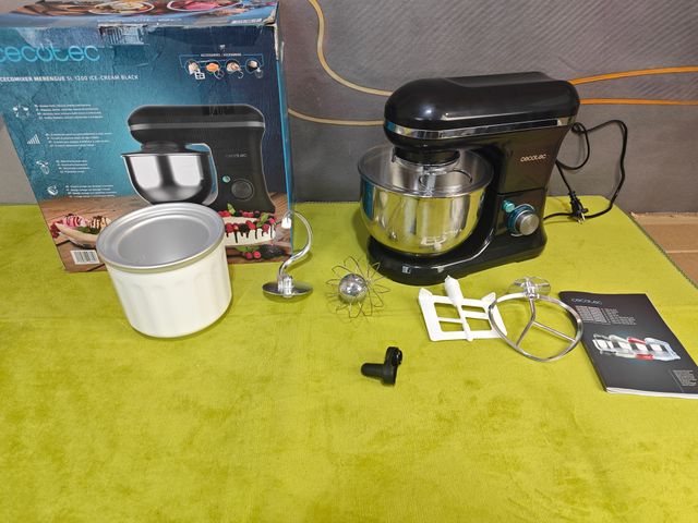Detalles del productoCecotec Batidora Amasadora Cecomixer Merengue 5L 1200 Ice-Cream Black. 1200 W, 5 Funciones, Bol de Acero de 5 L y Accesorios para Batir y Amasar, Incluye Función para Hacer Helado