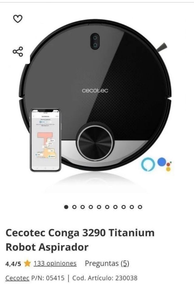 Robot aspirador Cecotec Conga 3290 Titanium en color negro. - Modelo: Conga 3290 Titanium - Marca: Cecotec - Tipo: Robot aspirador - Color: Negro