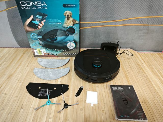 Detalles del productoCecotec Robot Aspirador y Friegasuelos Conga 8490 Ultimate Ultra Power. Navegación Láser, App, Barre, Aspira, Friega y Pasa la Mopa, 7000 Pa, Cepillo Central de Silicona