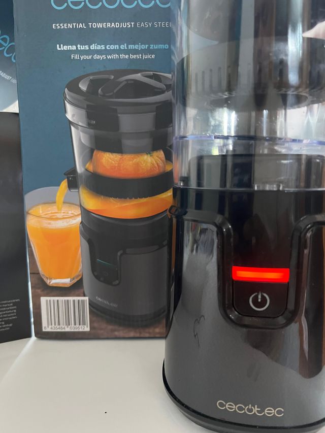 Detalles del productoCecotec Exprimidor de Naranjas Eléctrico de Torre Essential TowerAdjust Easy Steel. 140W, Capacidad de 0,35L, Incluye un Filtro y un Cono de Plástico, Única Dirección de Rotación, Desmontable - Diseño en torre.